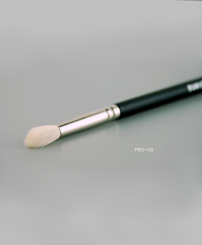 Pincel de pelo de cabra blanca. Virola redonda para difuminar sombras de ojos.