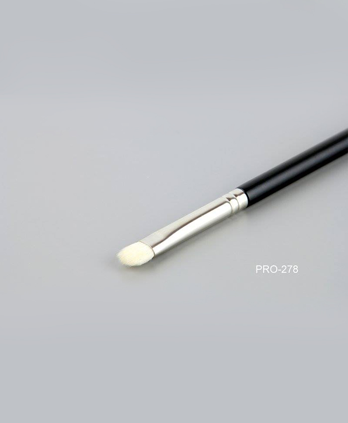 Pincel de cabra blanca con forma de lengua de gato para aplicar sombras en polvo.